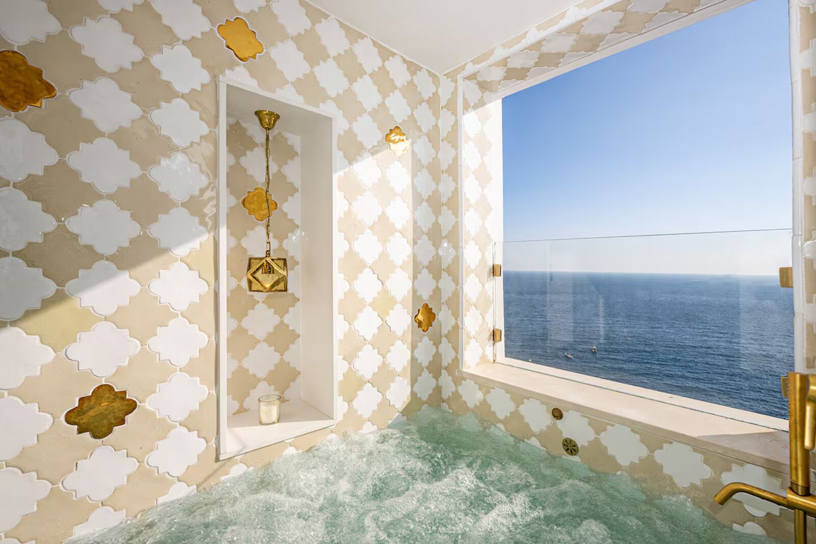 See more photosThis dreamy apartment rental is the perfect choice for a honeymoon or romantic getaway on the Amalfi Coast. Attached to the bedroom, the sea-view terrace has a built-in hot tub and an ornate seating area with a dining table. Inside, you’ll find a compact yet functional kitchen sporting handcrafted tiles. Bearing in mind that Positiano is a place of endless steps, access from the town center isn’t too taxing.