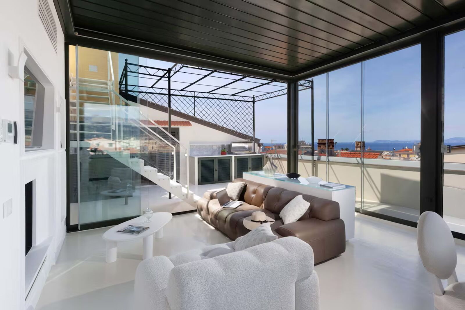 See more photos You might struggle to leave this luxury Airbnb Sorrento Italy villa, even for gelato. Split over two levels you have the choice of an upper balcony and a spacious lawn complete with a seasonal pool. The outdoor kitchen with a solarium and barbecue area enhances this already unique vacation rental. Choose to whip up a family feast from scratch or ask your host to call in a local chef.