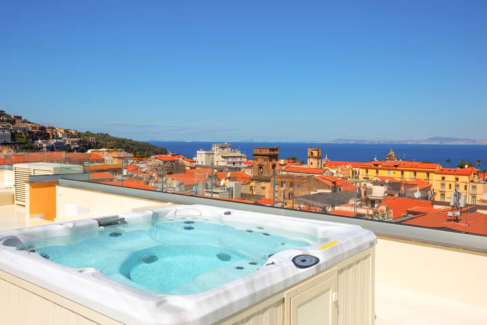 See more photosLocated in Piazza Tasso, the commercial heart of Sorrento, this luxurious Amalfi Coast Airbnb offers unmatched comfort and convenience. The sea-view terrace is the star attraction, with a private hot tub gazing out towards Mount Vesuvius. There is also a grill, which makes cooking on vacation feel like less of a chore. Interiors are modern, with a quartz-topped fitted kitchen and hotel-standard bedrooms.